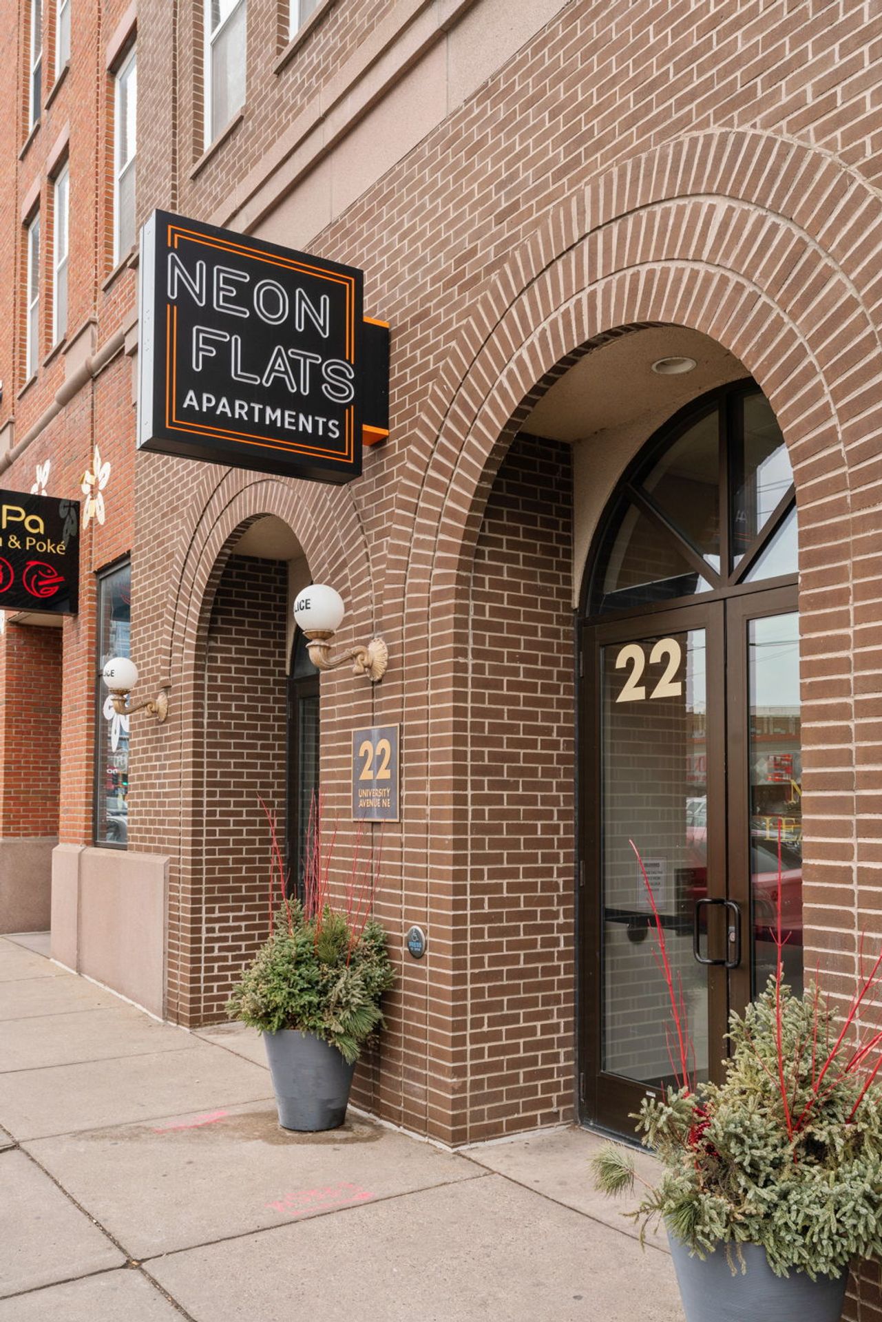 Conveniently located at University Ave NE and 1st Ave NE, Neon Flats Apartments is just minutes from countless restaurants, cafes, local hotspots, shopping, and recreational activities. Situated just minutes to downtown Minneapolis and I-35, Neon Flats Apartments is the perfect location for those who want to work and play. With a Walk Score of 94 and a Bike Score of 96, our apartment community is the ideal place to call home.